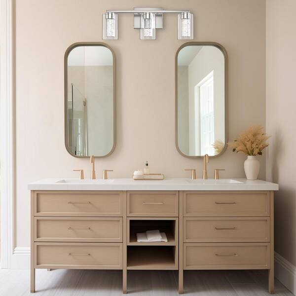 18 In. 3 Light Brushed Nickel LED Vanity Light with Dimmable White Neutral Warm Light Clear Glass Shade