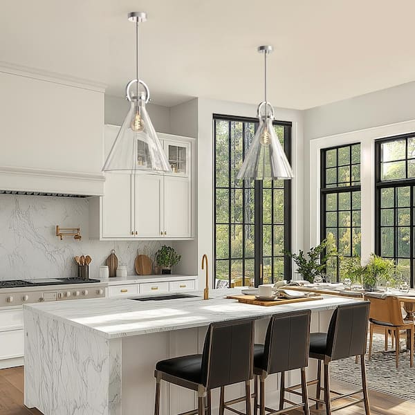 18 in. 1-Light Brushed Nickel Bell Pendant Light Perfect for Kitchen, Dining Rooms, or Foyer with Clear Glass Shade