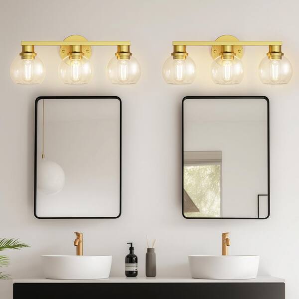 19 in. 3-Light Gold Bathroom LED Vanity Light with Clear Globe Shades, LED Interior Lighting for Powder Room