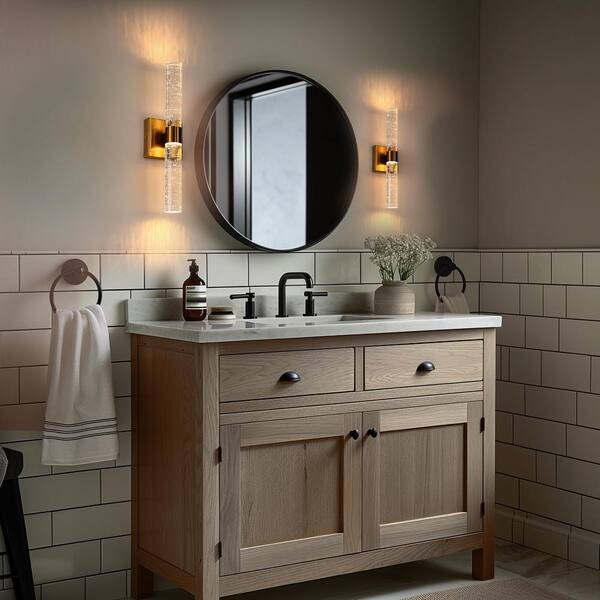 2-Light 18 in. Gold Modern Vanity Light Bar with Glass Bubble Shades and 3CCT Adjustable LED Function for Living Room
