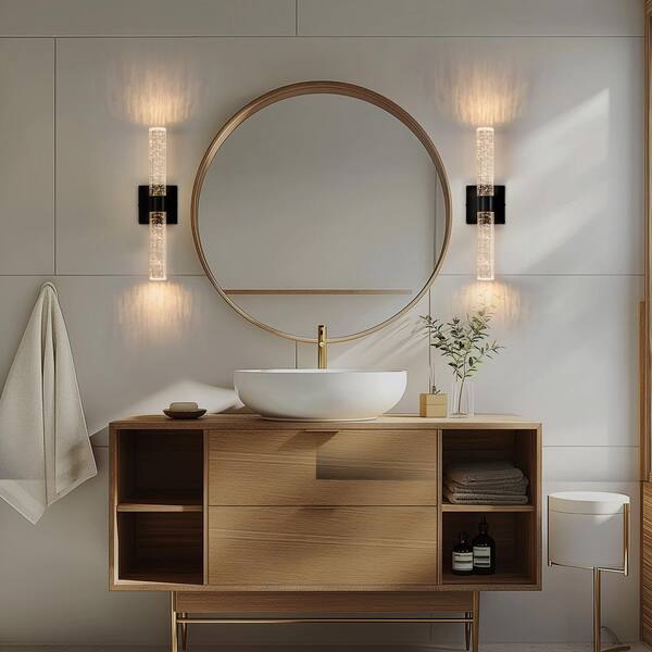 2-Light 18 in. Matte Black Modern Vanity Light Bar with Glass Bubble Shades and 3CCT Adjustable LED for Living Room