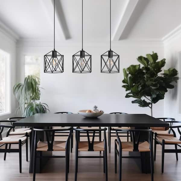 20.08 in. 3-Light Matte Black Industrial Linear Cluster Island Chandelier with Caged Shade for Kitchen Island and Dining