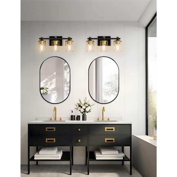 20 in. 3-Light Black and Gold Bathroom Vanity Light with Clear Glass Shades for Mirror and Vanity (Bulbs Not Included)