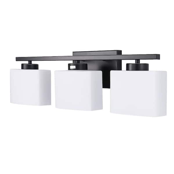 22 in. 3 Light Matte Black Vanity Light with White Shades for Bathroom Bedroom Living Room
