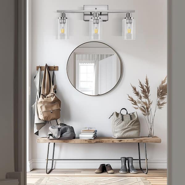24 in. 3-Light Brushed Nickel Vanity Light Fixtures for Bathroom with Clear Glass Shades and No Bulbs Included
