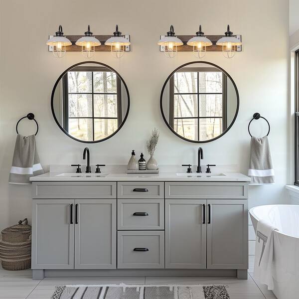 24 in. 3-Light Chrome and Wood Vanity Light with Glass Shade Dimmable No Bulbs Included