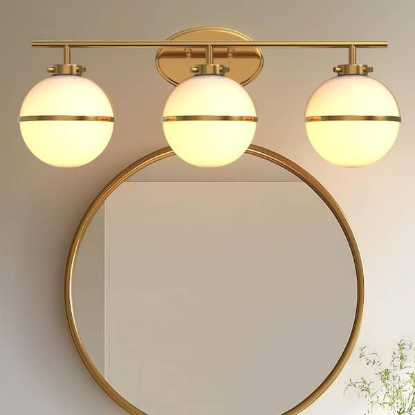 24 in. Modern 3-Light Bathroom Vanity Light for Powder Room, Dressing Room with Brass Globe Shade