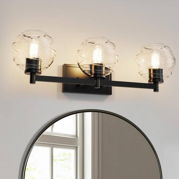 25 in. 3-Light Matte Black Globe Vanity Light Mounting Positions with Clear Glass Shade for Bathroom
