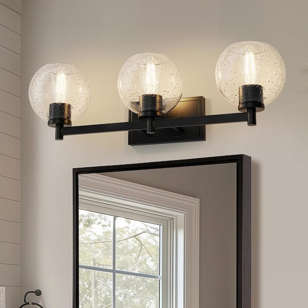 25 in. 3-Light Matte Black Globe Vanity Light with Clear Glass Shade Mounting Positions for Bathroom