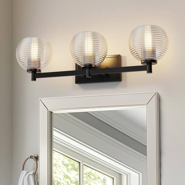 25 in. 3-Light Matte Black Globe Vanity Light with Clear Glass Shade for Bathroom Mounting Positions