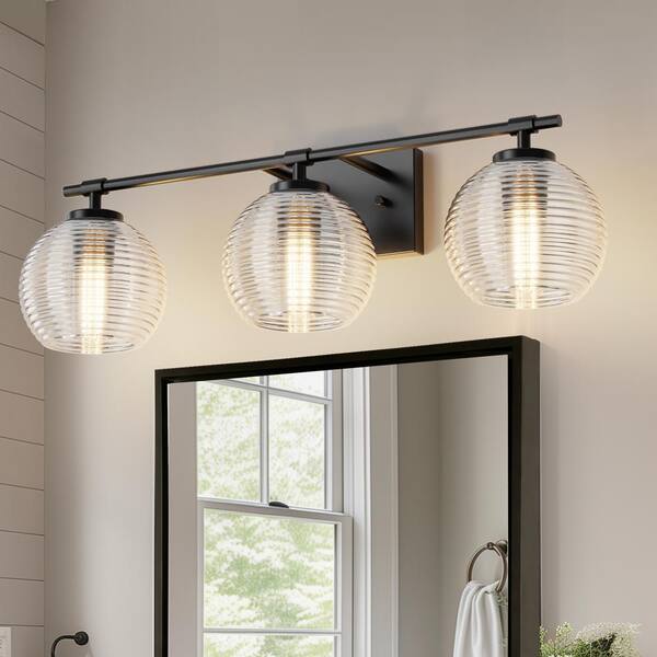 25 in. 3-Light Matte Black Globe Vanity Light with Clear Glass Shade for Bathroom and No Bulbs Included
