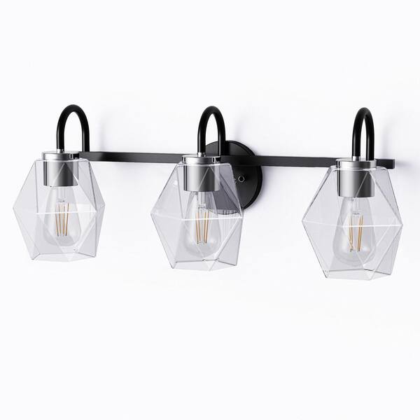 25 in. 3-Light Matte Black Hexagon Vanity Light with White Glass Shade for Bathroom and No Bulbs Included