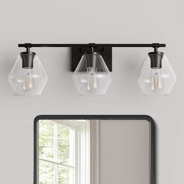 25 in. 3-Light Matte Black Vanity Light with Clear Glass Shade Dimmable for Bathroom and No Bulbs Included