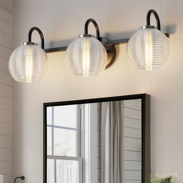 25 in. 3-Light Matte Black Vanity Light with Globe Clear Glass Shade No Bulbs Included for Bathroom