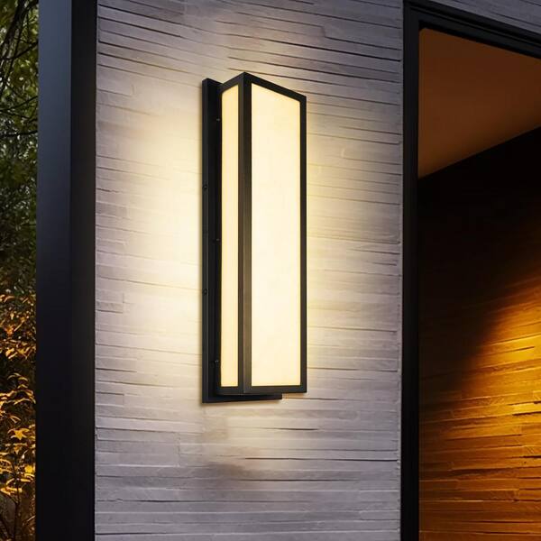 25 in.30-WattBlack Outdoor Integrated LED Rectangle Hardwired Lantern Wall Sconce with Resin Shade 3000K Waterproof