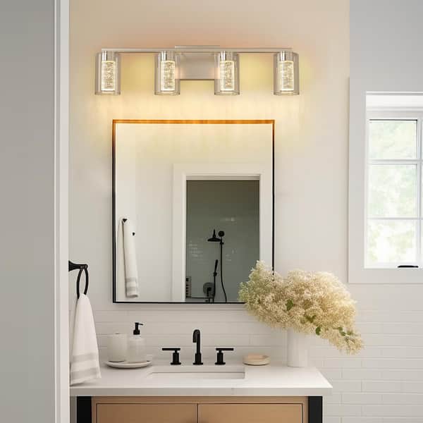 26 in.4-Light Brushed Nickel LED Vanity Light Cylinder Bar with Adjustable 3000/4000/6000K for Bathroom and Powder Rooms