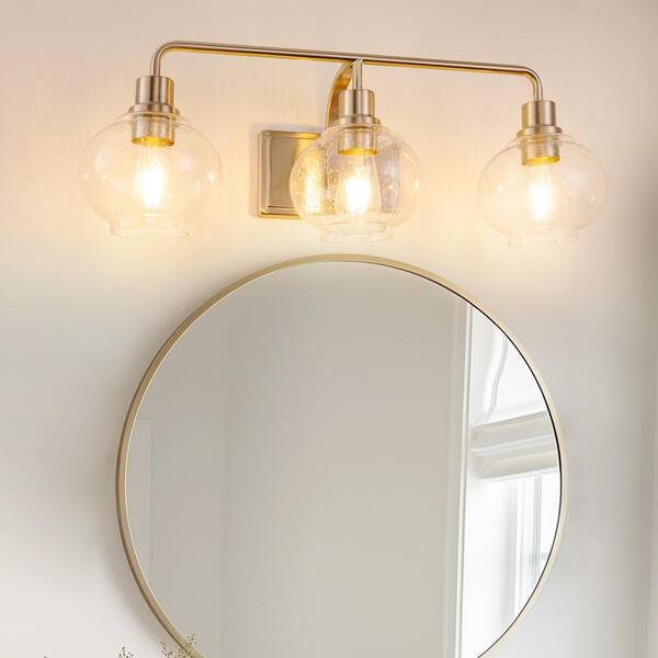 27 In. 3-Light Brushed Nickel Vanity Light with Clear Glass Shades, Elegant Bathroom Wall Sconce for Vanity or Mirror