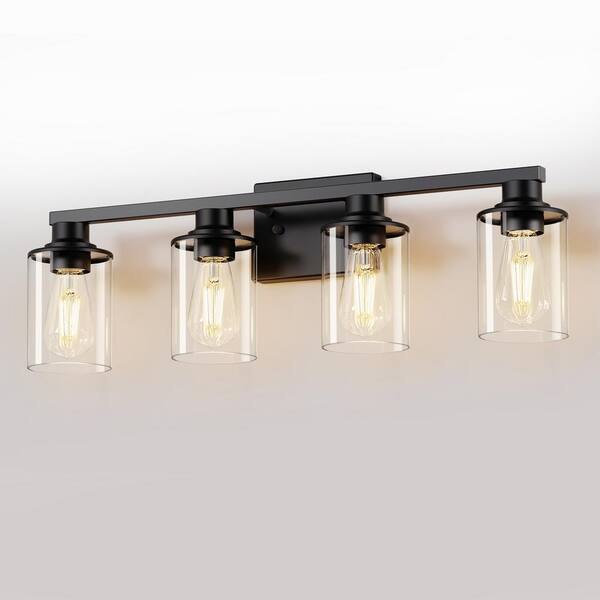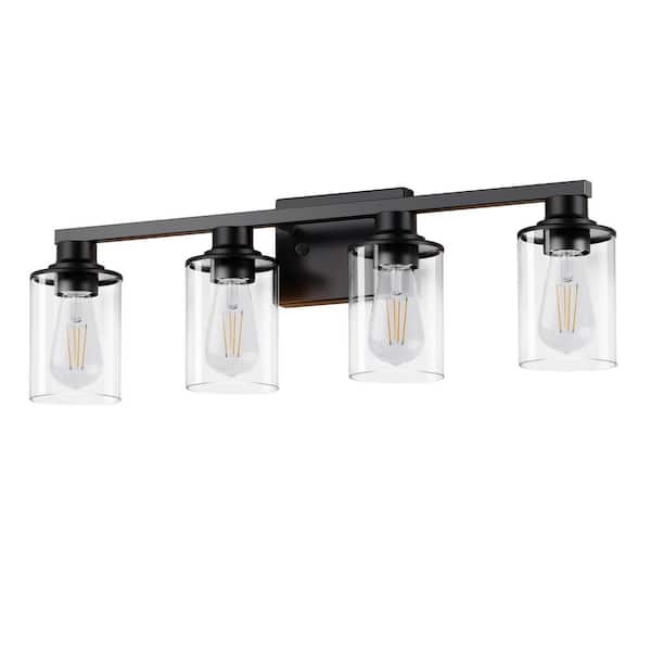 27 in. 4-Light Black Vanity Light Fixture, Industrial Bathroom Light with Clear Glass Shades