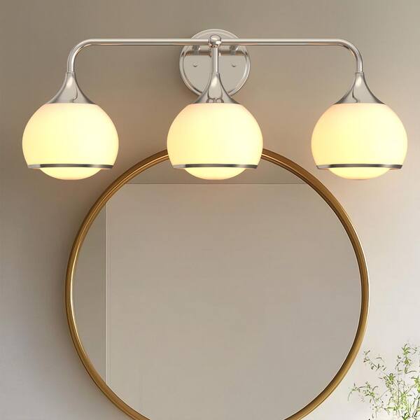 27 in. Modern 3-Light Brushed Nickel Vanity Light with Globe Soft White Glass for Bathroom, Dressing Room, Powder Room