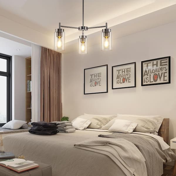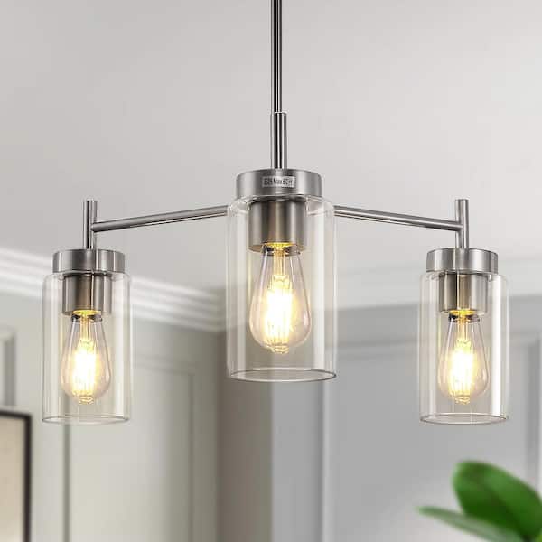 3-Light Chandelier in Brushed Nickel with Clear Glass Shades, a Modern Pendant Light Fixture for Kitchen or Dining Room
