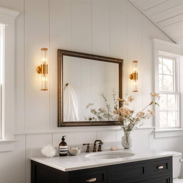 3 in. Crystal 2-Light Modern Brass Vanity Light Wall Sconce for Bathroom Dresser Vertical/Horizontal Wall Mount Lighting