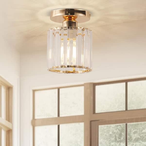 4.8 in. 1-Light Modern Gold Semi-Flush Mount with Crystal Shade and Bulbs Not Included (1-Pack)