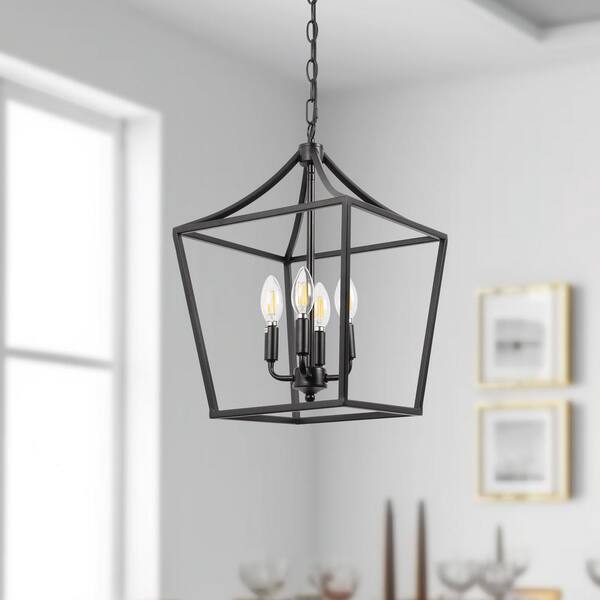 4-Light Black Grain Chandelier Pendant Light Fixture E12 Base Bulbs Not Included
