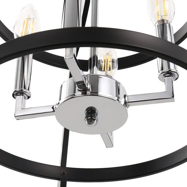 4-Light Black and Chrome Convertible Cage Pendant Light, Modern Semi-Flush Mount Ceiling Fixture for Living Room