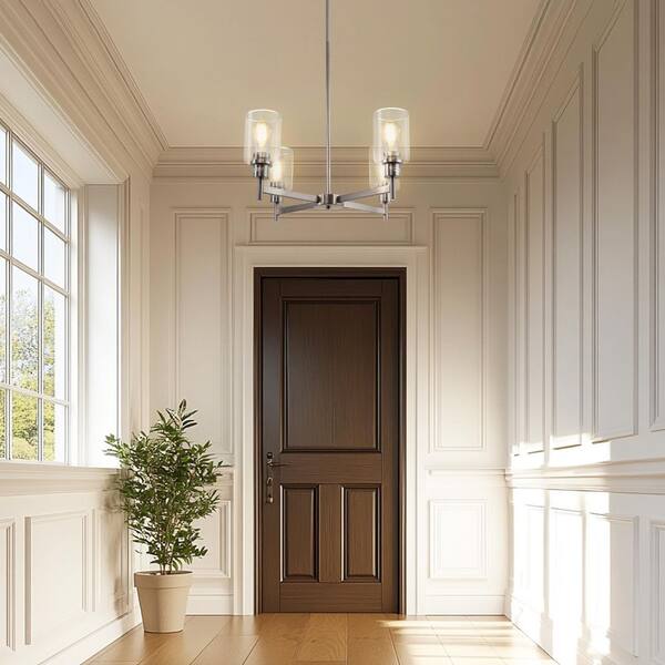 4-Light Brushed Nickel Chandelier Perfect for Dining Room or Entryway with Adjustable Height, Featuring Glass Shades