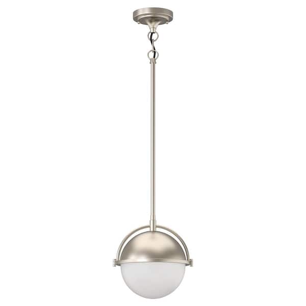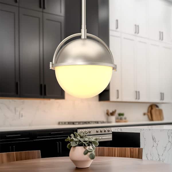 48in 1-Light Pendant Light with Satin Nickel Body, Milk White Glass Globe Shade, E26 Base, No Bulb Included
