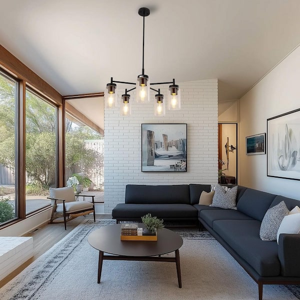 5-Light Rustic Chandelier Fixture ideal for Dining Room with Clear Glass Shades, a Modern Black Pendant Light