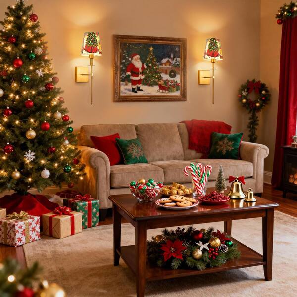 5 in. 1-Light Gold Rechargeable Wireless Wall Sconces with Fabric Shades and Dimmable Remote for Bedrooms (2-Pack)