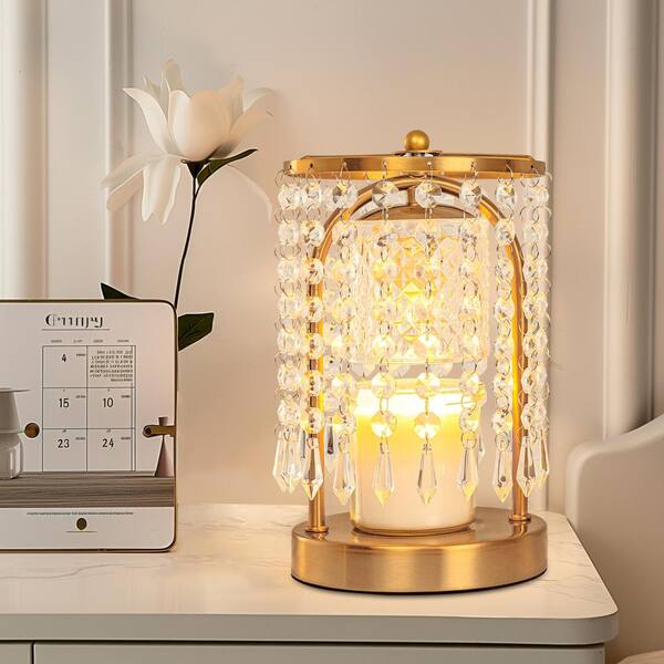 5 in. Gold Metal Crystal Table Lamp for Living Room with Clear Crystal Shade and Height Adjustable