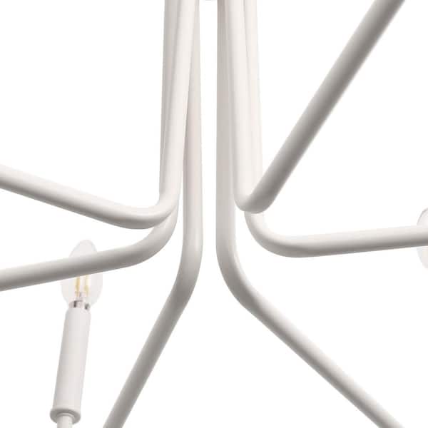 6-Light 28 in. White Farmhouse Rustic Candle Ceiling Chandelier, Adjustable Height for Dining Room and Living Room