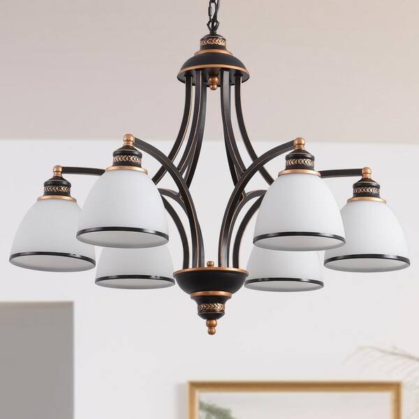 6-Light Oil Rubbed Bronze Chandelier with Frosted White Glass Shades
