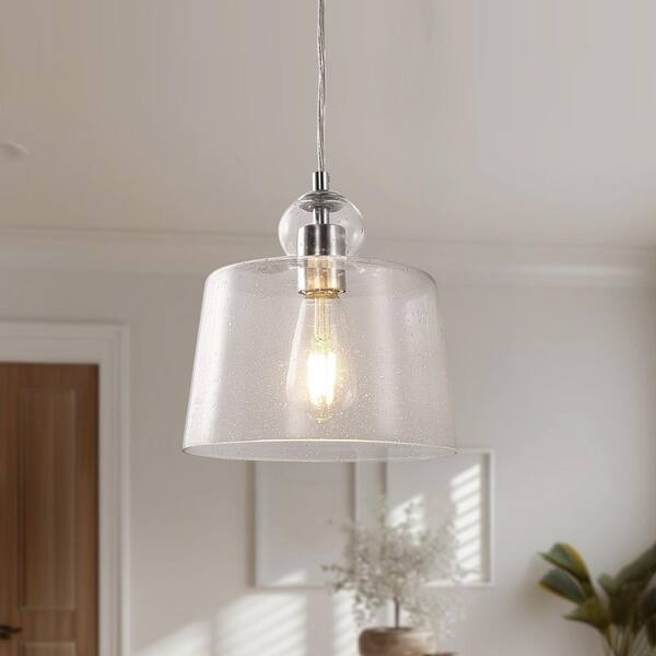 60-Watt 1-Light Brushed Nickel Dome Pendant Light with Seeded Glass Shade for Dining Room Bedroom