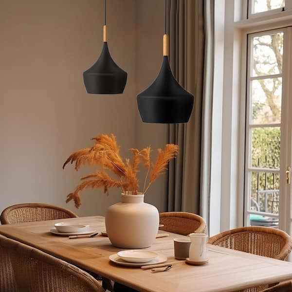60-Watt 1-Light Matte Black Cone Pendant Light with Metal Bell Shade and No Bulbs Included for Kitchen Island
