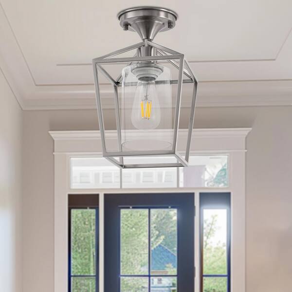 7.09 in. 1-Light Brushed Nickel Semi- Flush Mount Lighting with No Bulbs Included 1-Pack