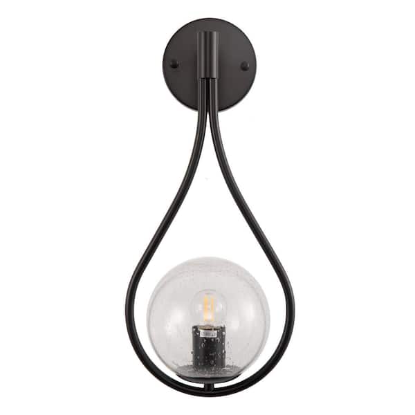 7.87 in. 1-Light Black Modern Globe Wall Sconce with Seeded Glass Shade, Contemporary Wall Light for Living Room