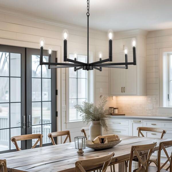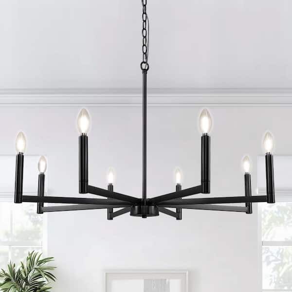 8-Light Black Metal Empire Chandelier for Dining Room with No Bulbs Included