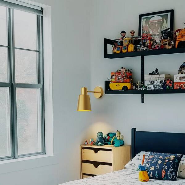 8 in. 1-Light Gold Dimmable Wireless Wall Sconces for Bathroom, LED Light with Remote Control (2-Pack)