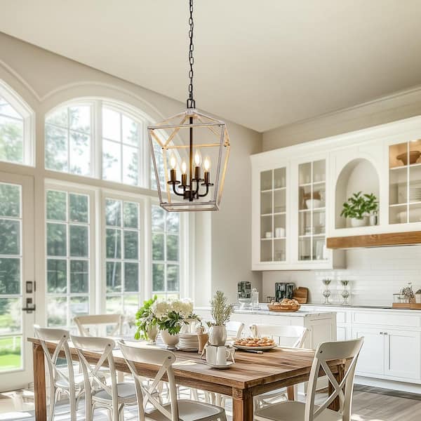 8 in. 4-Light White Geometric Open Cage Chandelier, Pendant Light for Dining Room Kitchens