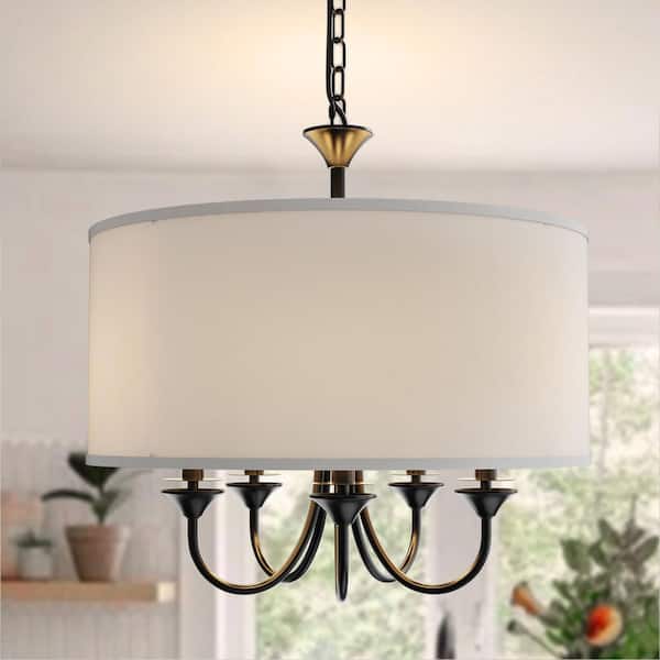 80.5 in. 5-Light Black Drum Chandelier with White Shades for Kitchens and Dining Rooms (Light Bulbs Not Included)