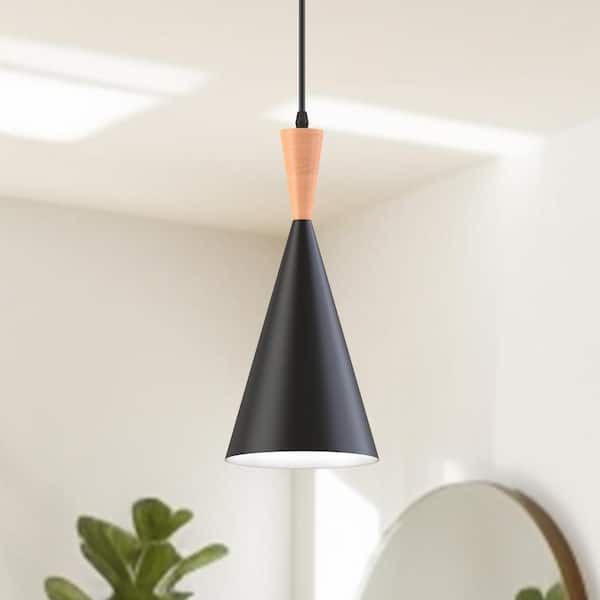 Industrial 9.06 in. 1-Light Matte Black Pendant Light with Triangle Shade for Kitchen Island and Dining Room