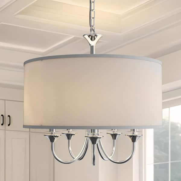 Industrial Style 5-Light Chrome Chandelier with White Shades for Kitchen and Dining Rooms (Light Bulbs Not Included)