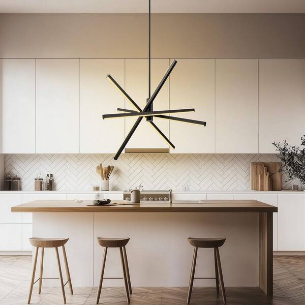 Matte Black LED Pendant Chandelier Dimmable 3000K/4000K/5000K Adjustable Color Temperature for Diningroom