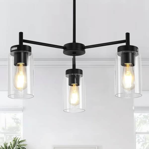 Modern 3-Light Pendant Chandelier with Clear Glass Shades in Rustic Black, Ideal for Dining Room or Kitchen