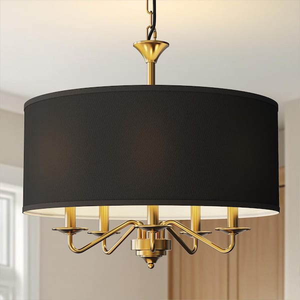Modern 5-Light Chandelier with Gold Finish White Shades for Dining Room E12 Sockets (Light Bulbs Not Included)
