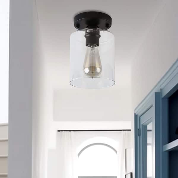 Retro 5.51 in. 1-Light Black Vintage Semi-Flush Mount with Clear Glass Shade and No Bulb Included