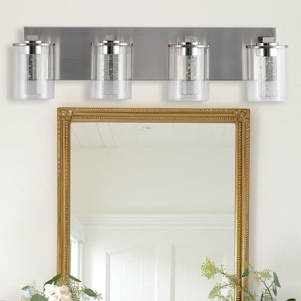 Series 24 in. 4-Light Brushed Nickel LED Vanity Light Bar with Dimmable White/Neutral/Warm Light